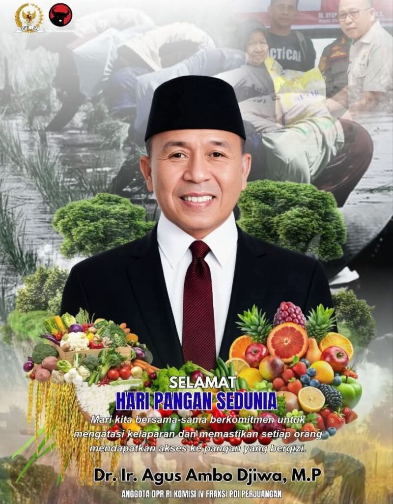 JAKARTA, CYBERMERAHPUTIH.CO.ID — Anggota DPR RI asal Sulawesi Barat, Agus Ambo Djiwa, mengajak seluruh masyarakat Indonesia, khususnya warga Sulawesi Barat, untuk terus memperkuat kemandirian pangan nasional melalui peningkatan produksi dan inovasi di sektor pertanian. Ajakan itu disampaikan bertepatan dengan peringatan Hari Pangan Sedunia yang diperingati setiap tanggal 16 Oktober.