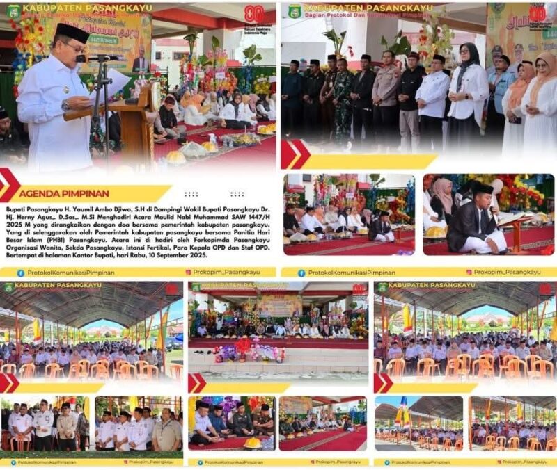 PASANGKAYU [CYBERMERAHPUTIH.CO.ID] – Pemerintah Kabupaten Pasangkayu bersama Panitia Hari Besar Islam (PHBI) menggelar peringatan Maulid Nabi Muhammad SAW 1447 H/2025 M yang dirangkaikan dengan doa bersama jajaran pemerintah daerah, Rabu (10/9/2025).