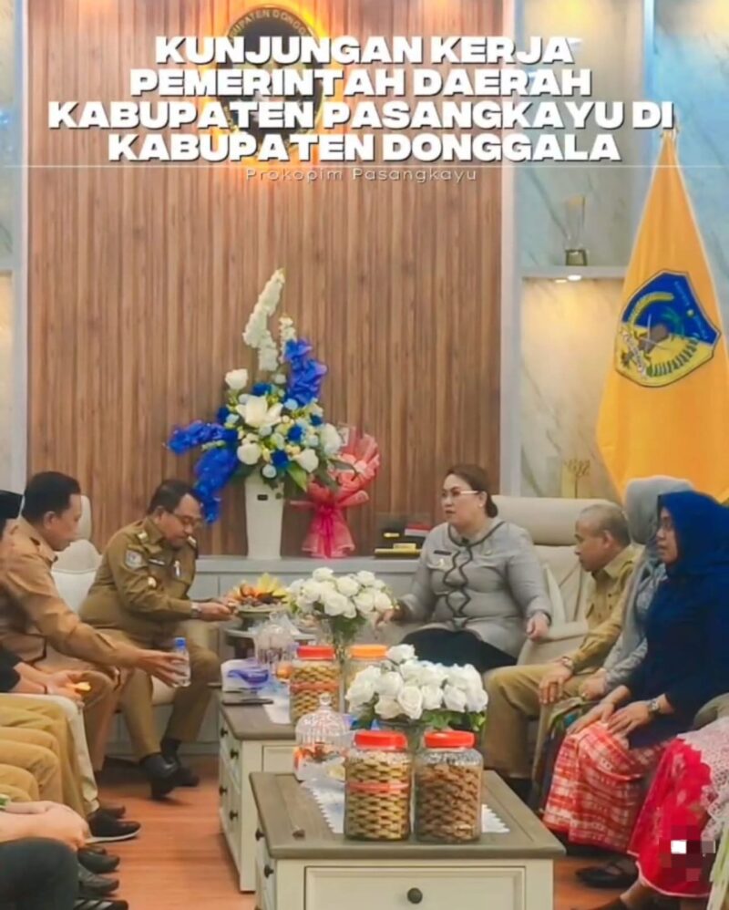 Rombongan Pemerintah Kabupaten Pasangkayu diterima langsung oleh Bupati Donggala, didampingi Sekretaris Daerah Kabupaten Donggala serta jajaran Organisasi Perangkat Daerah (OPD) terkait. Pertemuan berlangsung di ruang kerja Bupati Donggala, pada Senin, 22 Desember 2025.