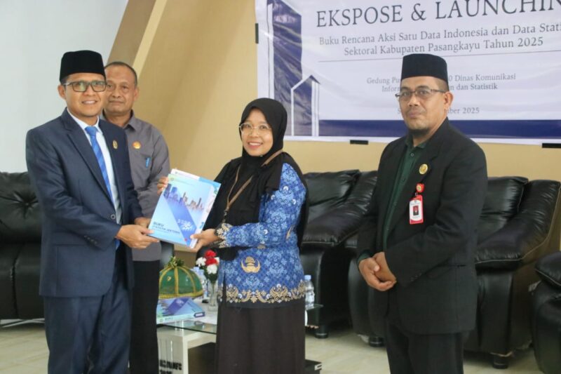PASANGKAYU, CYBERMERAHPUTIH.CO.ID — Dinas Komunikasi Informatika Persandian dan Statistik (Diskominfopers) Kabupaten Pasangkayu menggelar kegiatan ekspose sekaligus launching Buku Rencana Aksi Satu Data Indonesia dan Data Statistik Sektoral Kabupaten Pasangkayu Tahun 2025, Senin (22/12/2025).