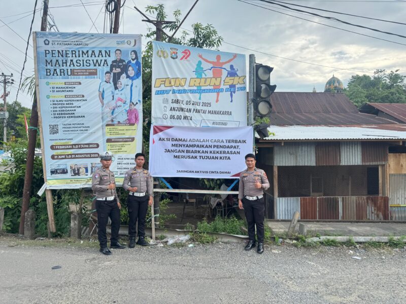 Polda Sulbar [CYBERMERAHPUTIH.CO.ID] – Direktorat Lalu Lintas Polda Sulawesi Barat mengambil langkah proaktif dalam menjaga keamanan dan ketertiban masyarakat dengan memasang spanduk himbauan anti-anarkisme di sejumlah lokasi strategis di Kabupaten Mamuju, Senin (1/9/25).