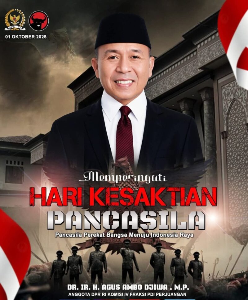 JAKARTA, CYBERMERAHPUTIH.CO.ID — Anggota DPR RI Komisi IV, Dr. Agus Ambo Djiwa, MP, menyampaikan ucapan selamat memperingati Hari Kesaktian Pancasila yang jatuh pada 1 Oktober 2025. Momentum ini dipandang sebagai pengingat penting akan keteguhan Pancasila sebagai dasar negara, ideologi bangsa, dan pemersatu seluruh rakyat Indonesia.