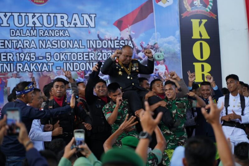 Polda Sulbar [CYBERMERAHPUTIH.CO.ID] – Kapolda Sulawesi Barat, Irjen Pol Adi Deriyan Jayamarta, bersama Ketua Bhayangkari dan jajaran pejabat utama Polda Sulbar, turut serta memeriahkan peringatan Hari Ulang Tahun (HUT) ke-80 Tentara Nasional Indonesia (TNI), Minggu (5/10/25) di Lapangan Tammajarra, Korem 142/Tatag.