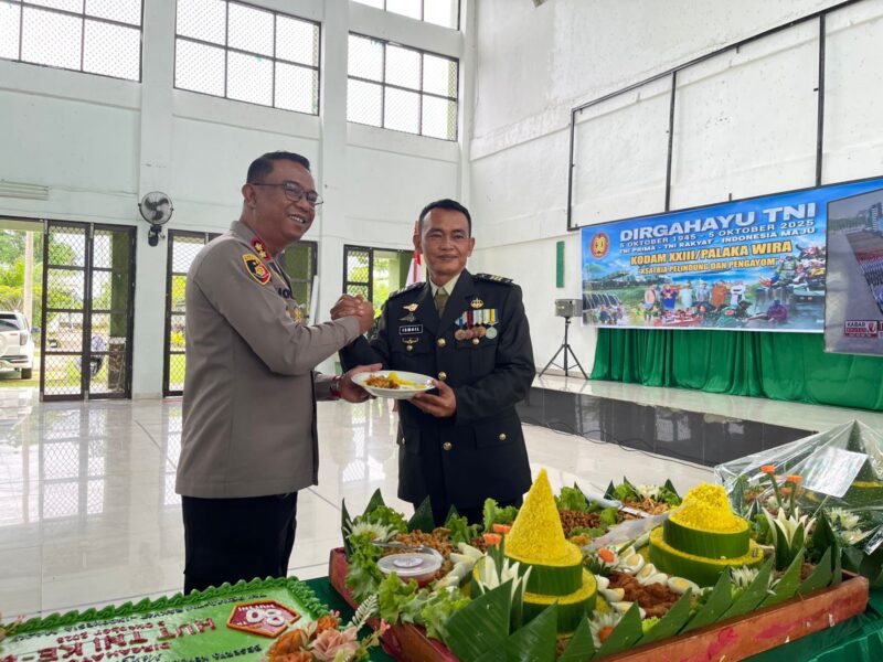 Polres Pasangkayu [Cybermerahputih.co.id] – Dalam suasana penuh keakraban dan semangat kebersamaan, Kapolres Pasangkayu AKBP Joko Kusumadinata, S.H., S.I.K. bersama Ketua Bhayangkari Cabang Pasangkayu Ny. Rini Joko memberikan kejutan istimewa kepada jajaran TNI Kodim 1427/Pasangkayu dalam rangka Hari Ulang Tahun ke-80 TNI, bertempat di Mako Kodim 1427/Pasangkayu, Minggu (5/10/2025) sekitar pukul 08.00 WITA.